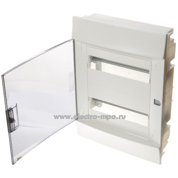 Е0419. Бокс 68124 белый встраиваемый на 24 модуля с клеммником прозрачная дверь IP40 (Рувинил)
