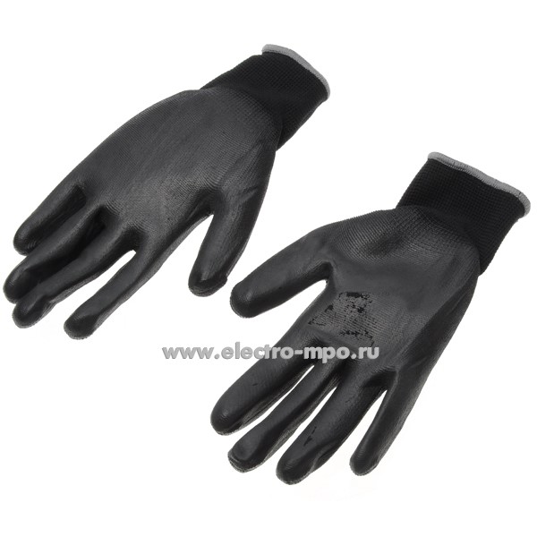 И9133. Перчатки ПЕР049 нейлоновые с полиуретановым покрытием черные (Россия)