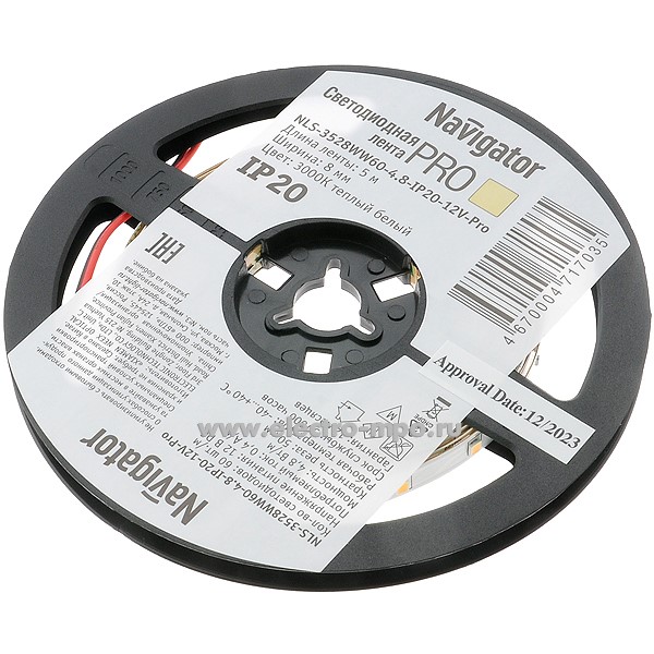 Лента светодиодная 71703 NLS-3528WW60-PRO 5м 12В пост.тока 24Вт 300Led т/б свет IP20 (Navigator)