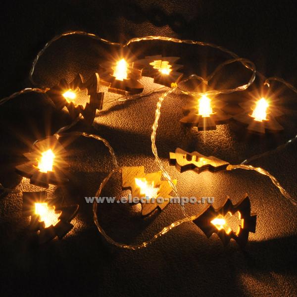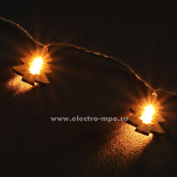 С5062. Светодиодная гирлянда "Деревянные ёлочки" 14046 NGF-D008-10WW 2хAA 1,8м 10LED т/б IP20 (Navigator)