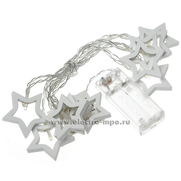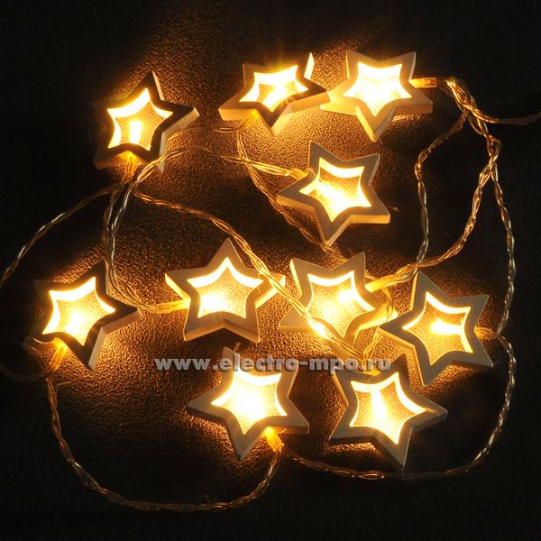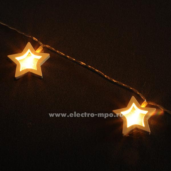 Светодиодная гирлянда "Деревянные звёздочки"14047 NGF-D009-10WW 2хAA 1,8м10LED т/б IP20 (Navigator)