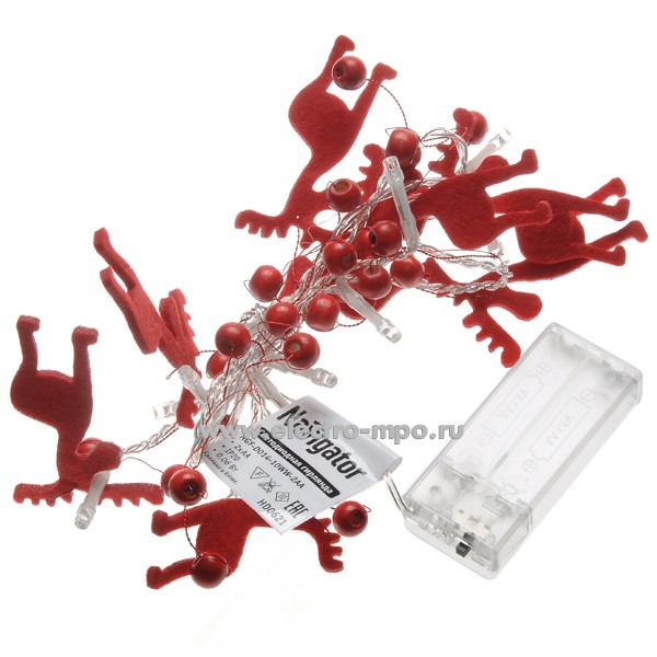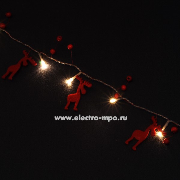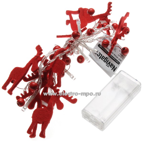 С5065. Светодиодная гирлянда "Новогодние олени" 80719 NGF-D014-10WW 2AA 1,2м 10LED т/б свет IP20 (Navigato