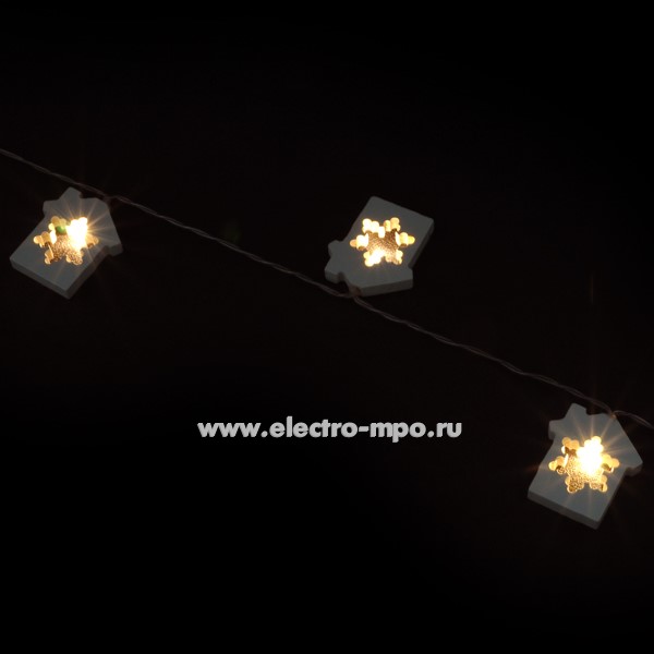 С5067. Светодиодная гирлянда "Деревянные домики" 80718 NGF-D013-10WW 2AA 1,65м 10LED т/б свет IP20 (Naviga
