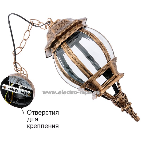 Светильник 11248 PL8105 220В Е27 подвесной цепь 0,5м 8-ми гр. "Классика" черн. золото IP44 (Feron)