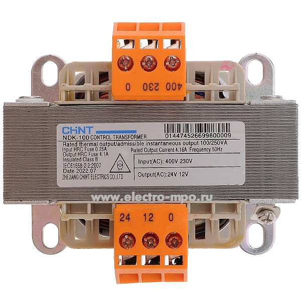 Б4342. Трансформатор 255493 NDK-100 380_220В/24_12В 100ВА понижающий (CHINT)