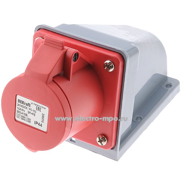Р4862. Розетка стационарная РС-103 26192DEK 16А 380В 3P+PE IP44 CEE114-6 (DEKraft)