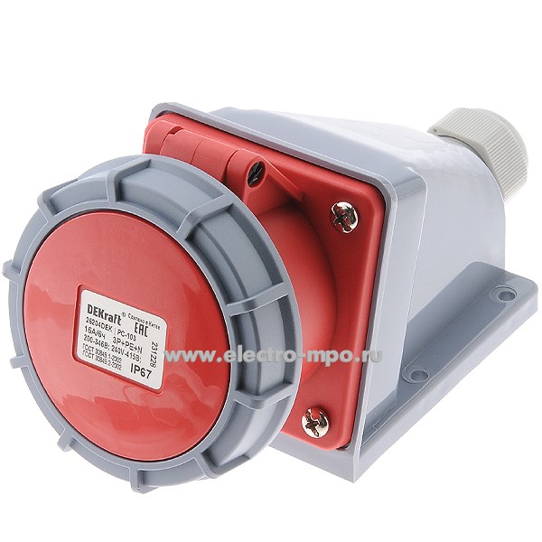 Р4874. Розетка стационарная РС-103 26204DEK 16А 380В 3P+PE+N IP67 CEE115W-6 (DEKraft)