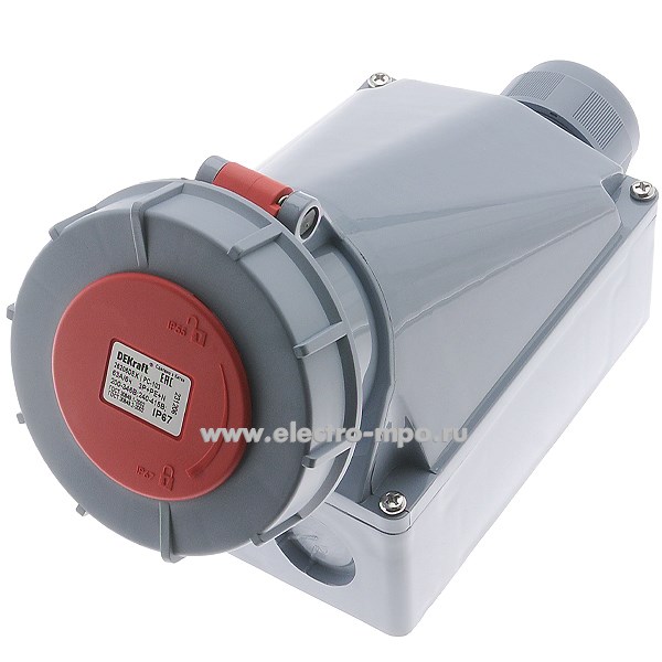 Р4877. Розетка стационарная РС-103 26207DEK 125А 380В 3P+PE+N IP67 CEE145W-6 (DEKraft)