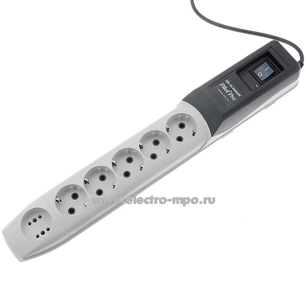 Р5322. Сетевой фильтр Pilot-Pro (арт.176) 5 розеток "евр"+1розетка 1,8м 10А 1300Дж (ЗИС Россия)