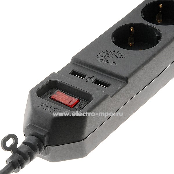Р5369. Сетевой фильтр ЭРА USF-5es-1.5m-USB--B (Б0019036) 1,5м, 5 роз."евр" 10А+ 2хUSB 2,1А (выкл,т/р) черн