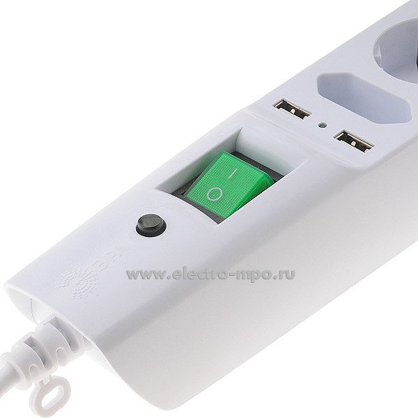 Р5370. Сетевой фильтр ЭРА SFU-5es-2m-W (C0043327) 2м, 5 роз."евр" 10А+ 2хUSB 2,1А (выкл,т/р) белый (Китай)