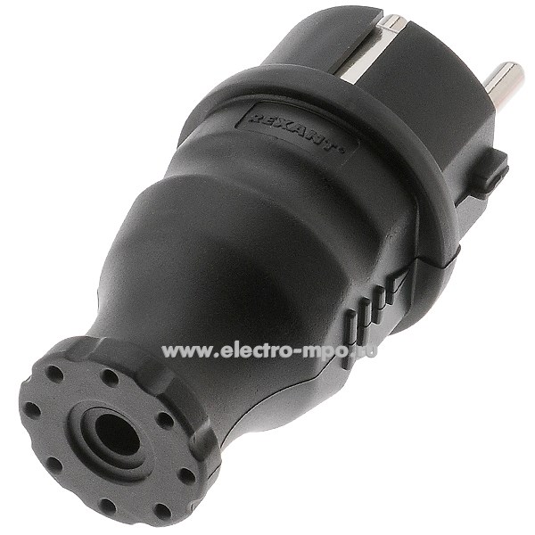 - Р6665. Вилка 111-001 кабельная прямая "евро" влагозащищенная каучук IP44 16А (Rexant)